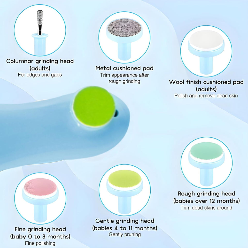 Baby Nail Trimmer | Electric & Safe Baby Nail Clippers | 6 Grinding Heads for Newborn Toddler or Adults Toes and Fingernails | Effective Baby Manicure Tools (Multi Color / 1 Pc / Battery not included)