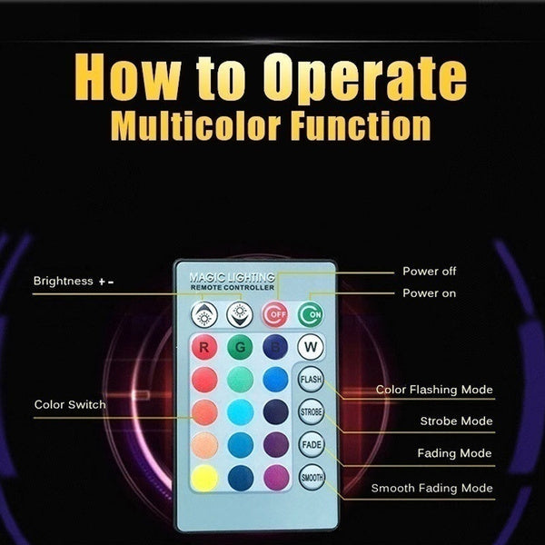 Use the remote control (no application is required): you can manually adjust the brightness and light switch. Adjustable lighting and music, equivalent to 50 watts of halogen bulbs, can save 85% of the electricity bill. You can also choose RGB mode, flash / flash / fade out 3 color models.