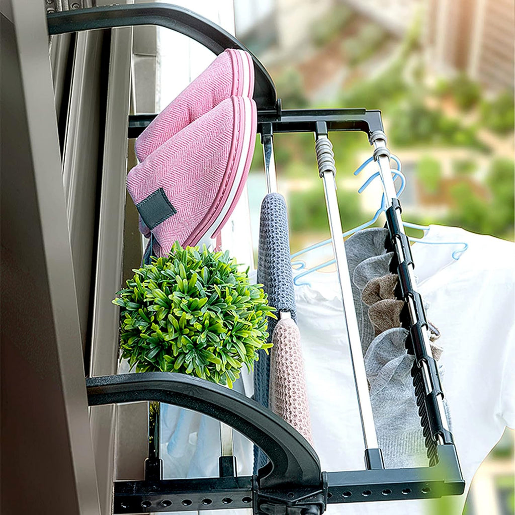 Multipurpose Drying and Storage Hanger Rack are very easy to assemble and super easy to adjust. The stand features multiple stands to dry your apparel, intimates, and other cloth items within the comfort of your home. This balcony drying rack is made of durable steel and high-quality plastic to meet your long-term storage demand.