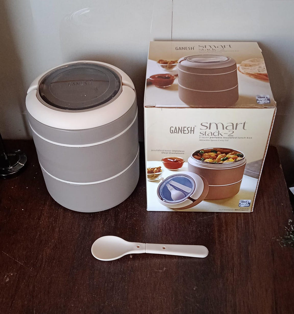 Ganesh Smart Stack 2 Layer Portable Lunch Box Stainless Steel Airtight Leak-Proof Lunch Box for Office, School, Picnic: Color May Vary (2 Layer)